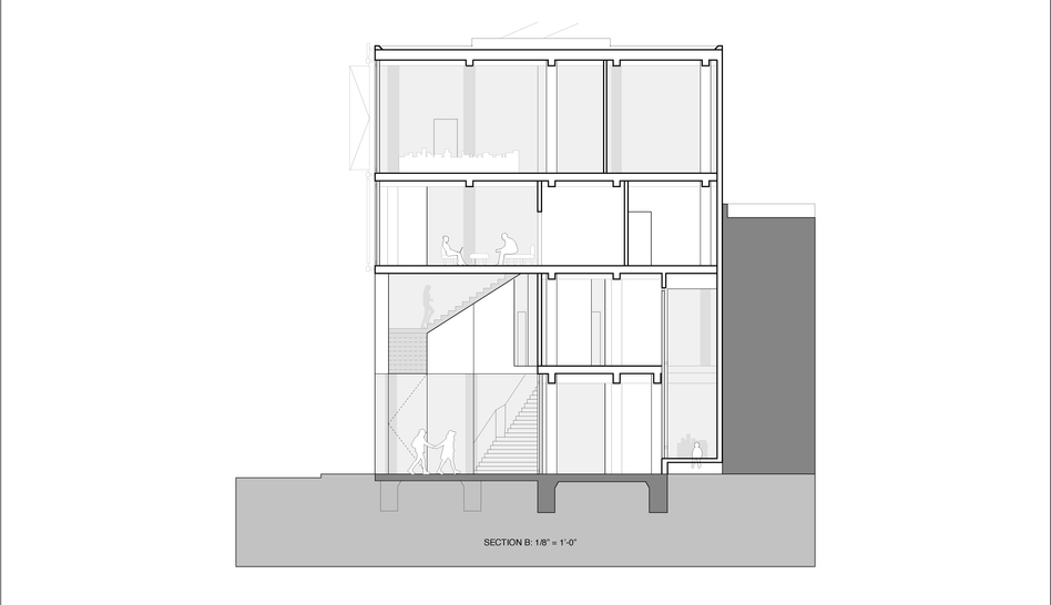 The Urban Institute is a hypothetical multi-purpose building in the heart of SOMA. The building programs include a flexible street-front exhibition space, a permanent home for the long-lost WPA model of SF, a research/policy workspace, a public assembly hall and smaller flexible meeting spaces to support the activities of the institute. The project will negotiate different strategies for thinking about light and air, program, energy, building performance, and the larger urban context of site and circulation.